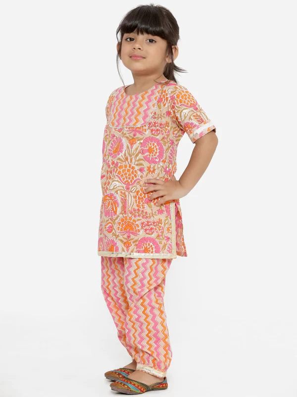 A Line Cotton Fabric Beige Color Floral Printed Kurta And Pyjama With Goat Work.