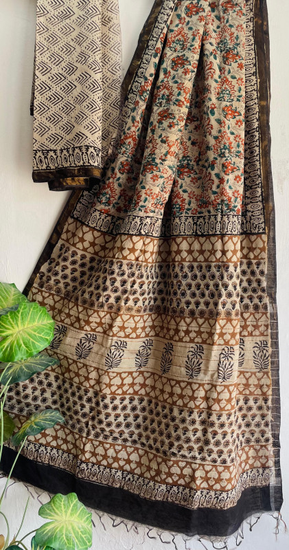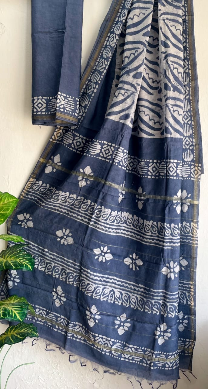 Exclusive hand block printed chanderi  cotton sarees  with blouse jn dabu print