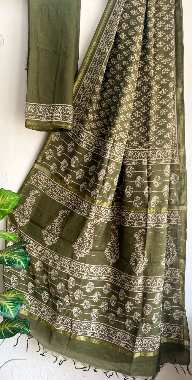 Exclusive Hand Block Printed Chanderi Cotton Sarees With Blouse