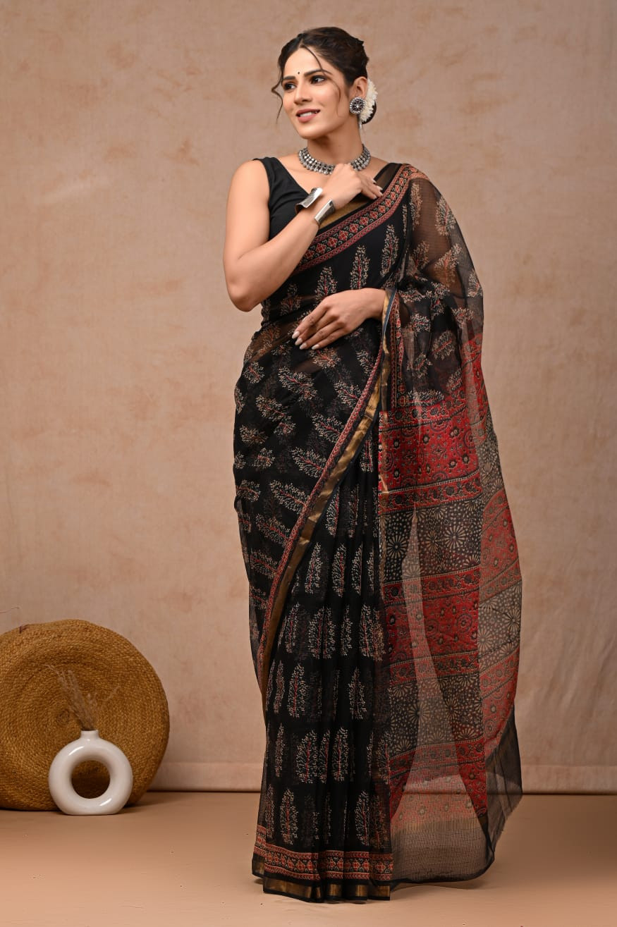 Hand Block Printed Kota Doriya Sarees With Blouse
