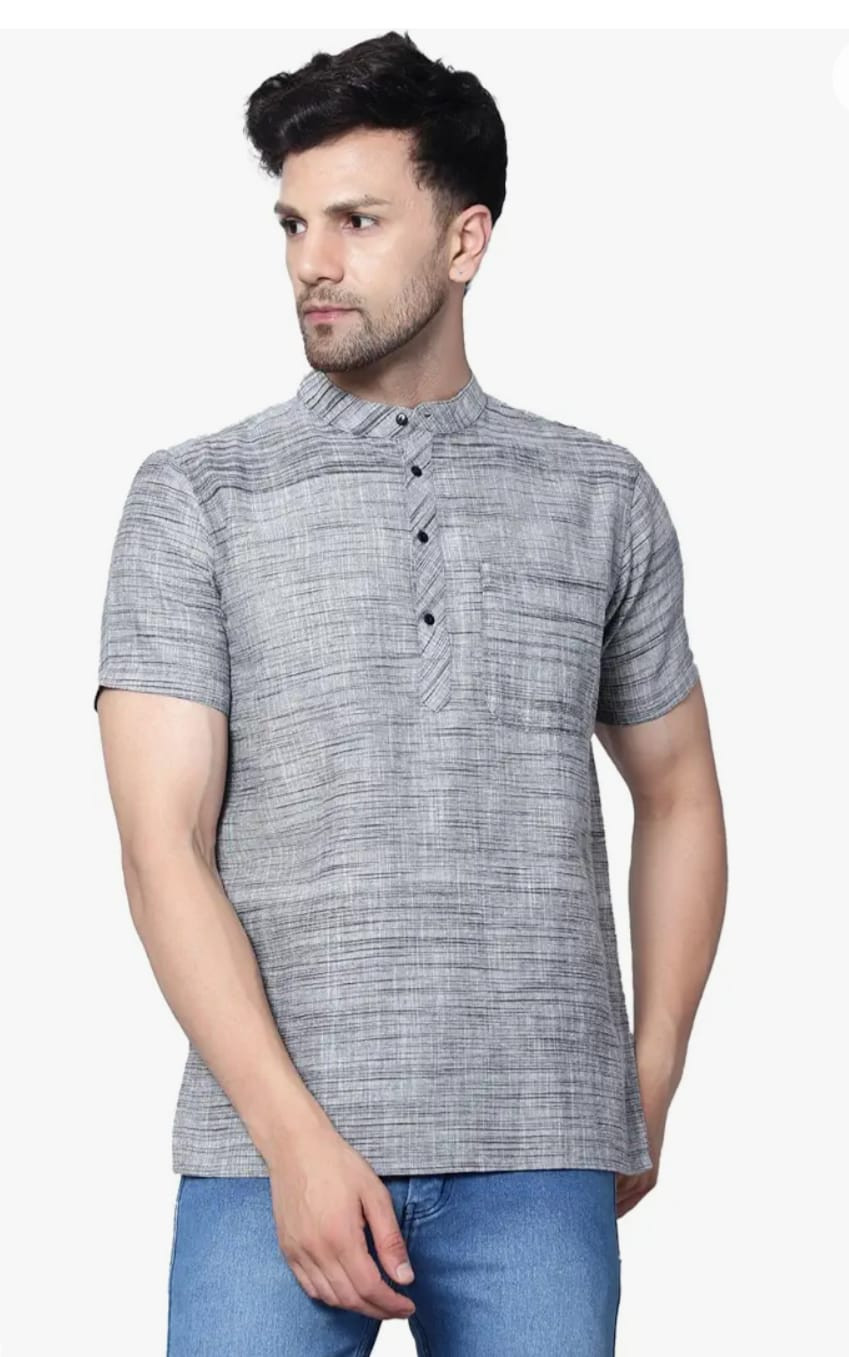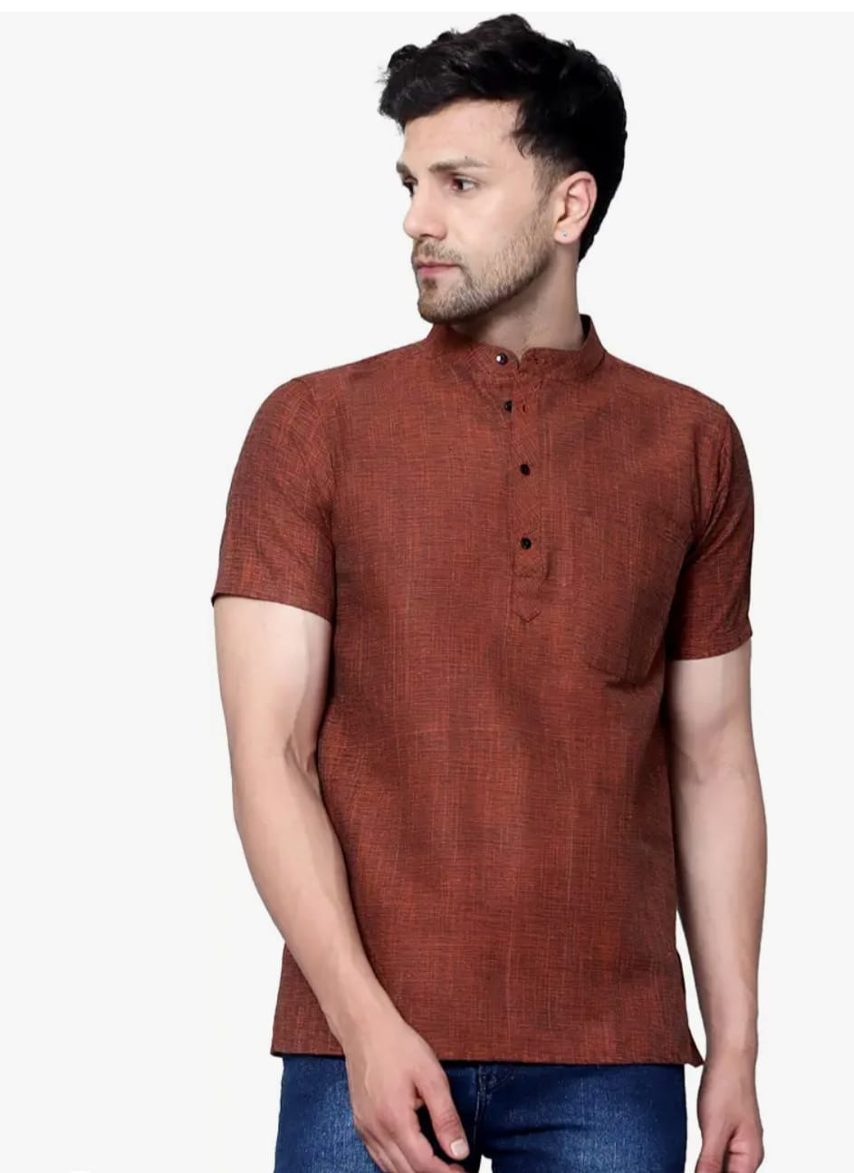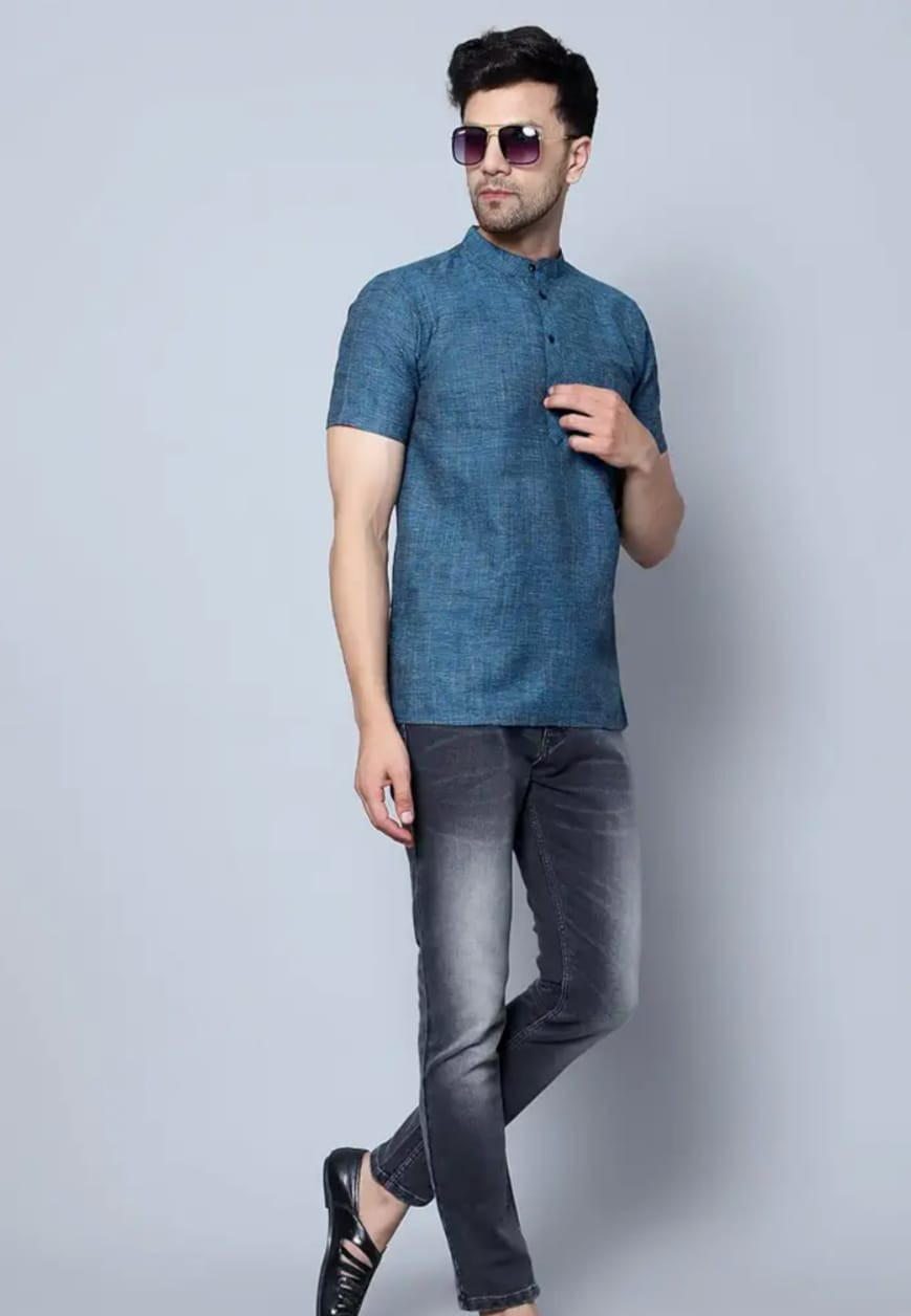 Men's Cotton Blend Regular Textured Short Kurta Half Sleeves