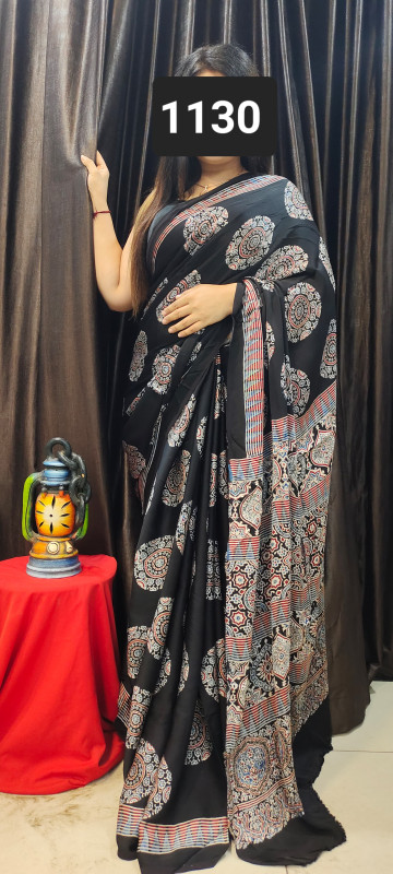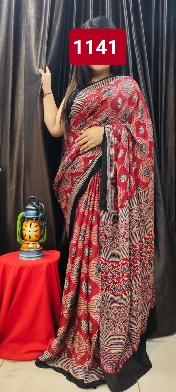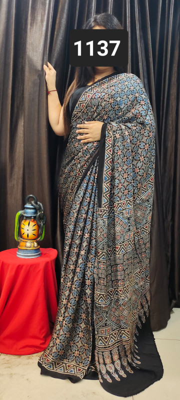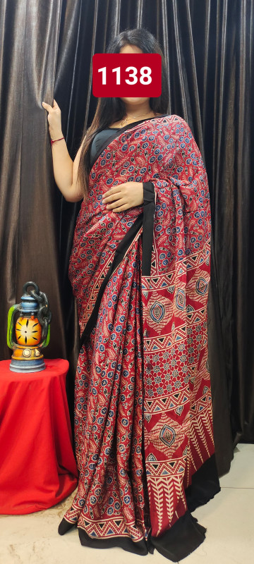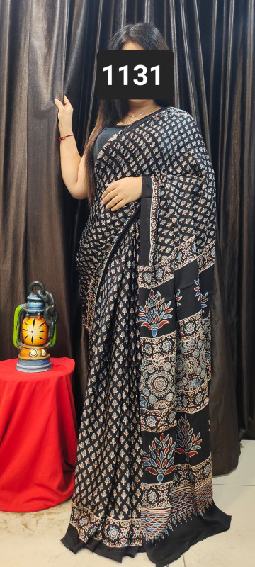 Modal Silk Ajrakh Saree With Blouse