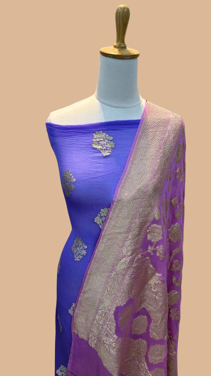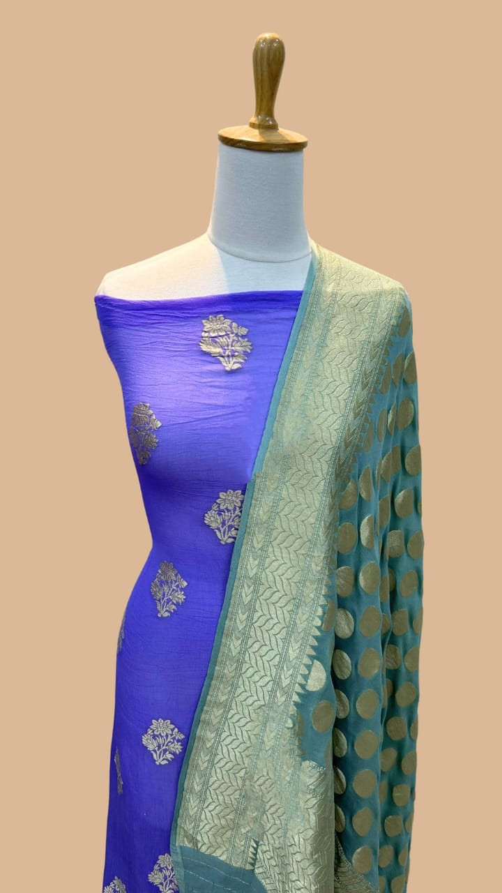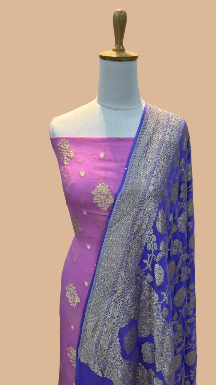 Pure Banarasi Khaddi Georgette Shuit Water Zari Work Handloom Made With Silk Trade Mark