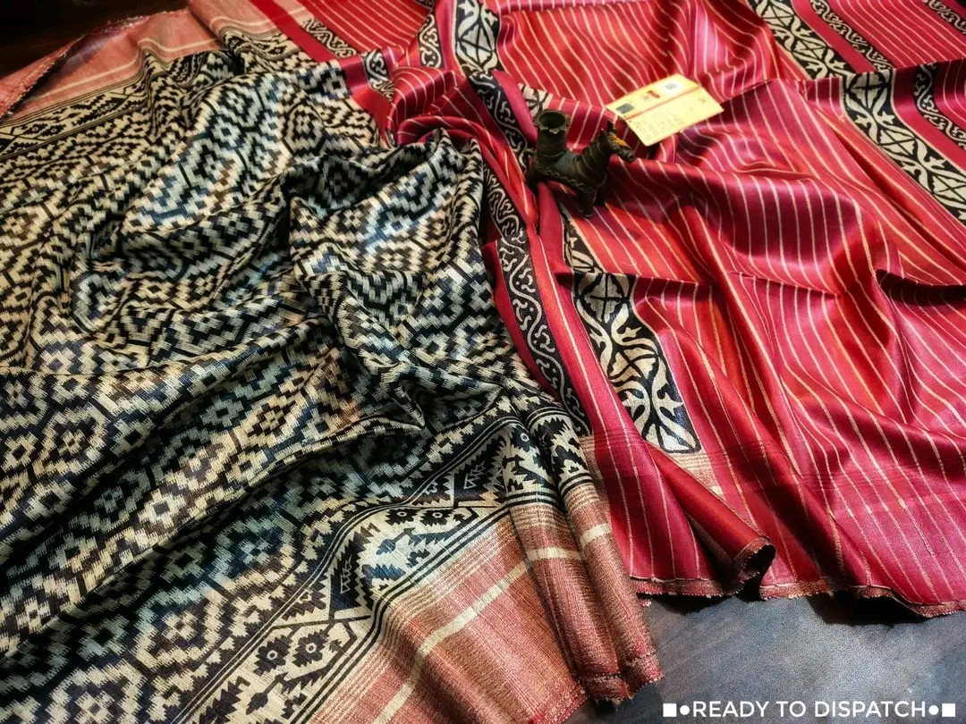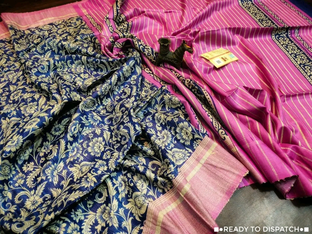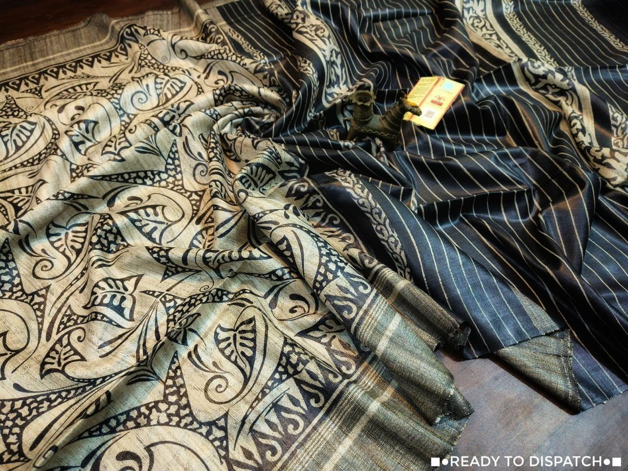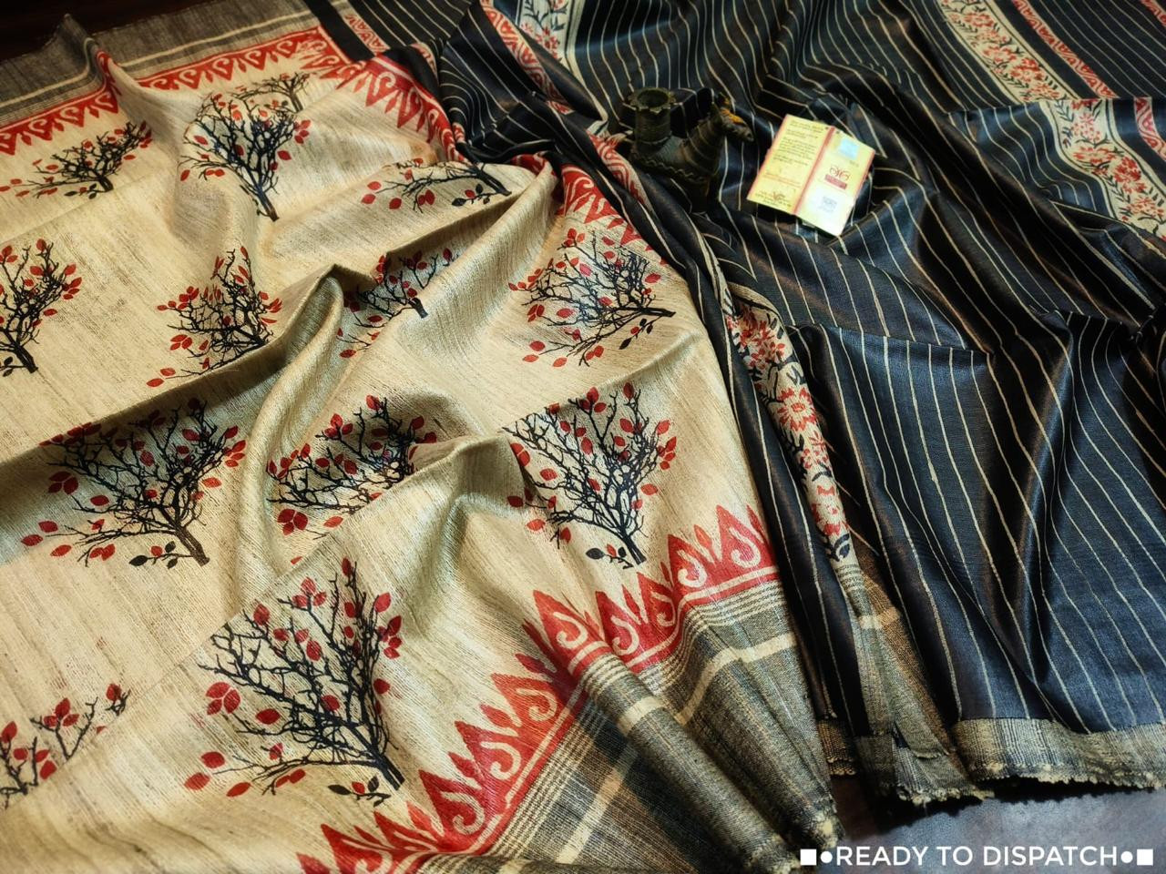 Tussar Ghicha Border Print Saree With Contrast Bp And Pallu