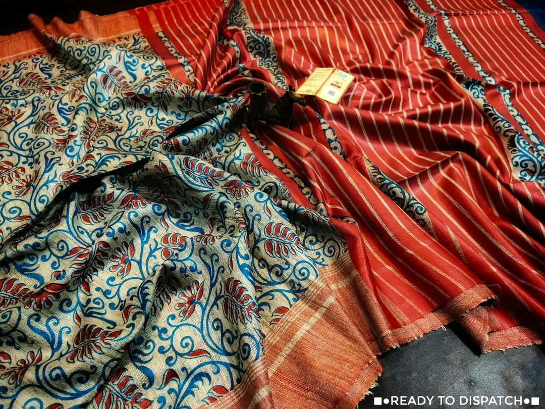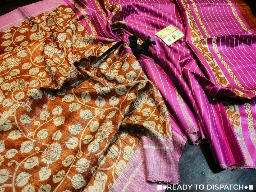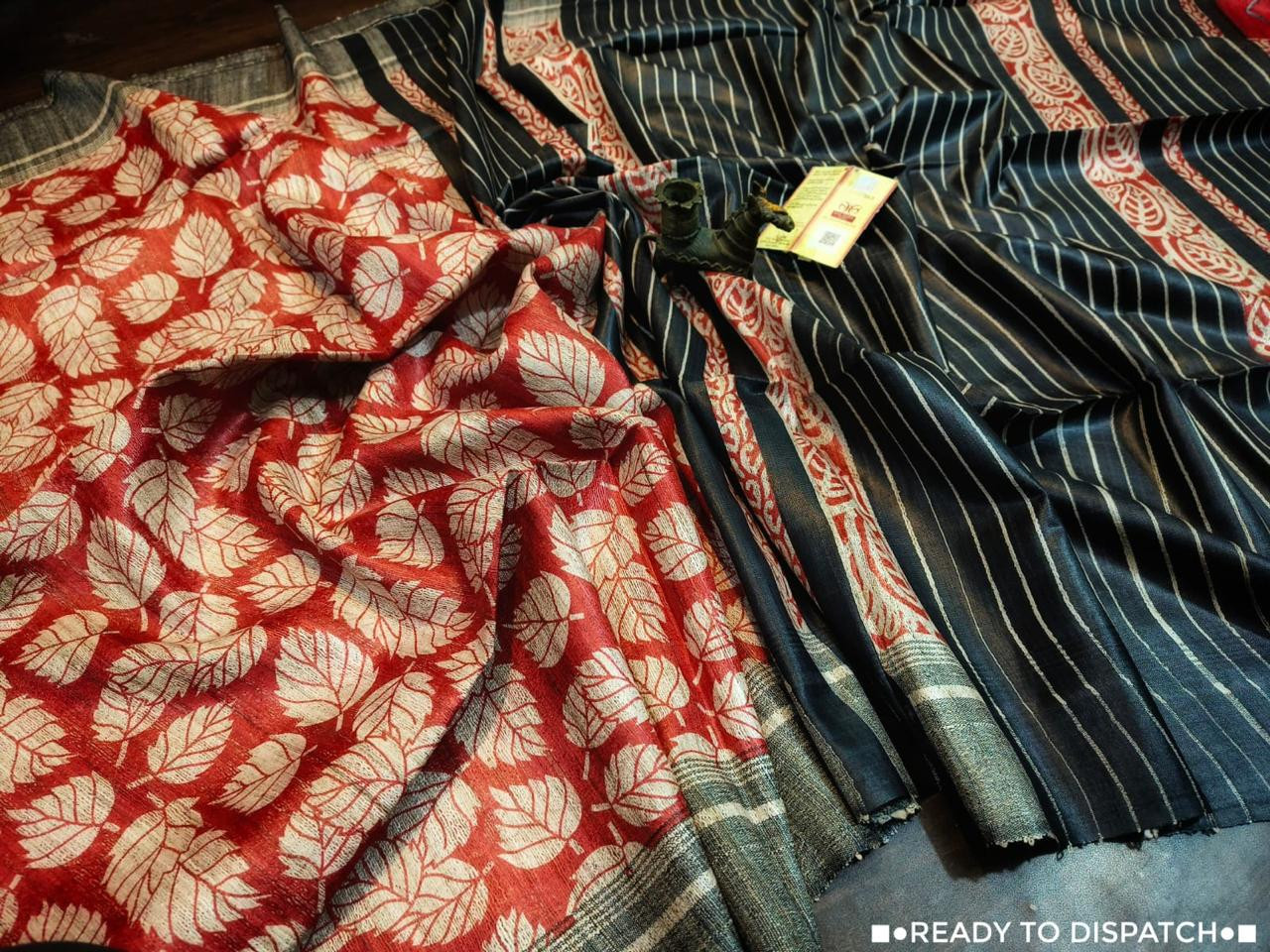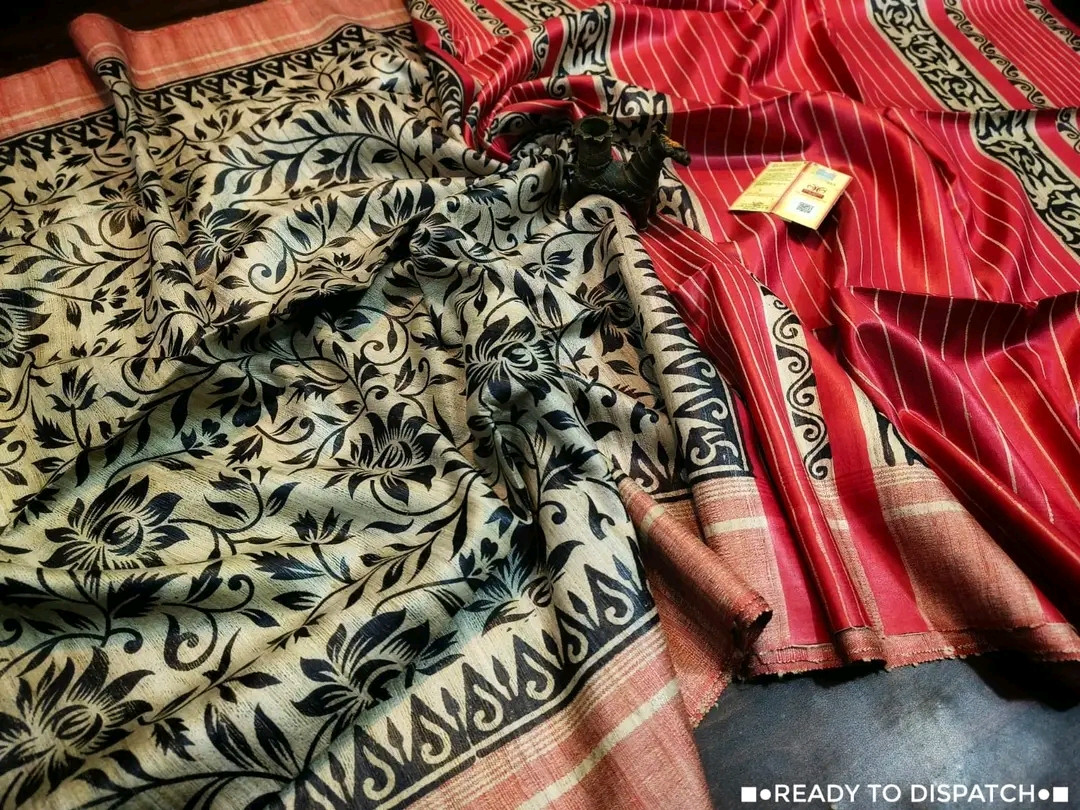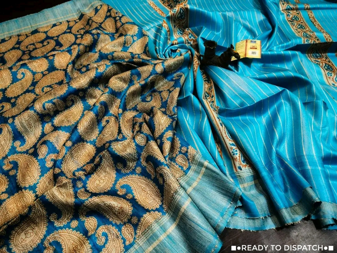 Tussar Ghicha Border Print Saree With Contrast Bp And Pallu