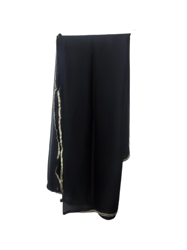? Midnight Glamour: Women's Black Georgette Kurti, Pant, and Dupatta Set with Light Zardosi Work