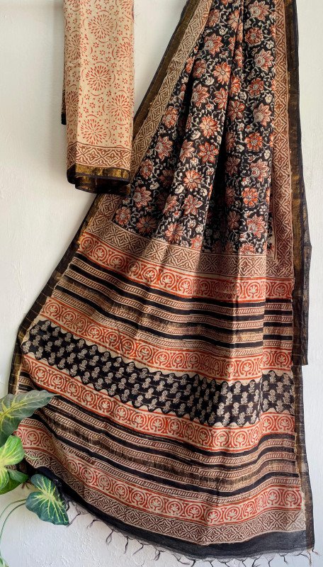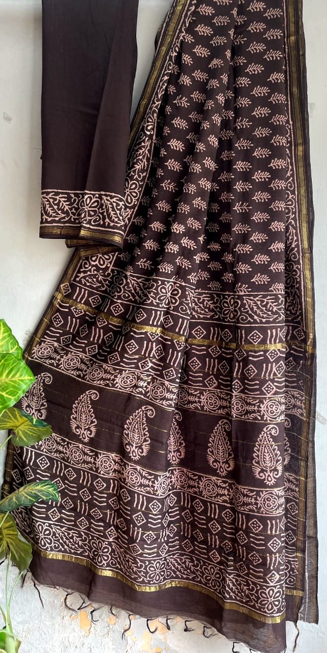 Exclusive hand block printed chanderi  cotton sarees  with blouse jn dabu print