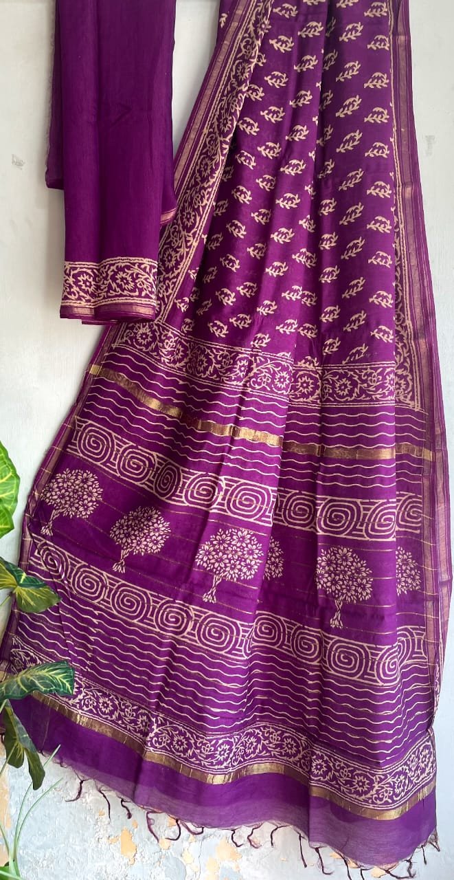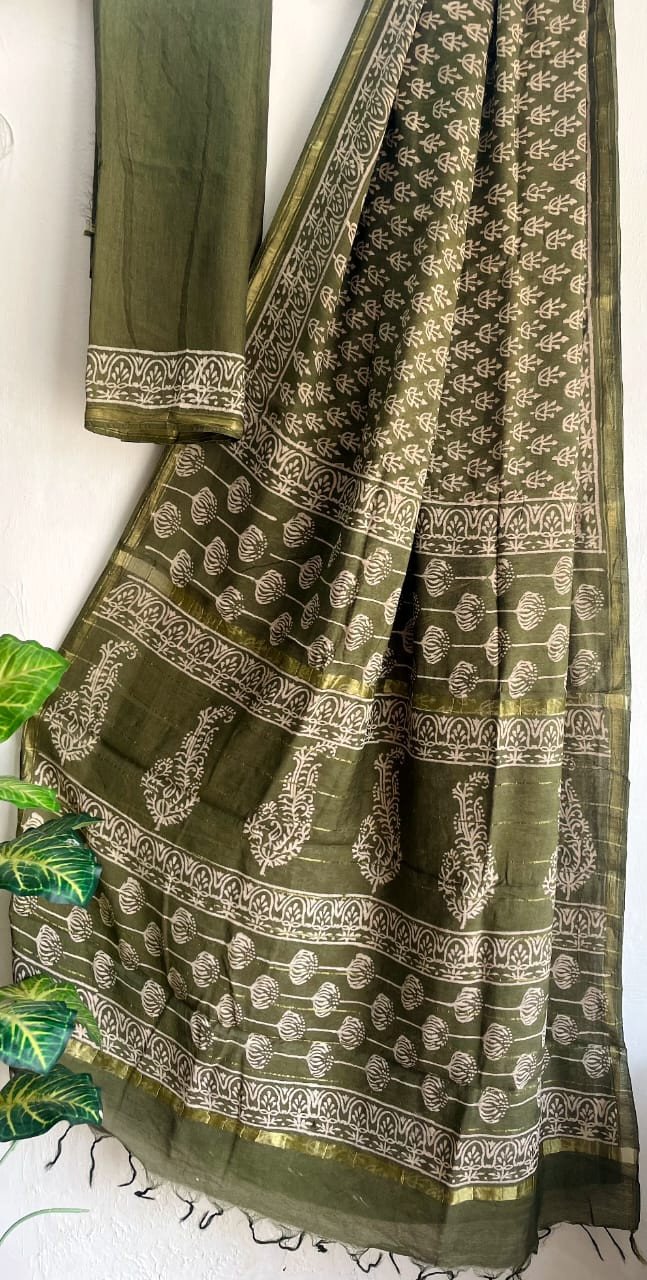 Exclusive Hand Block Printed Chanderi Cotton Sarees With Blouse