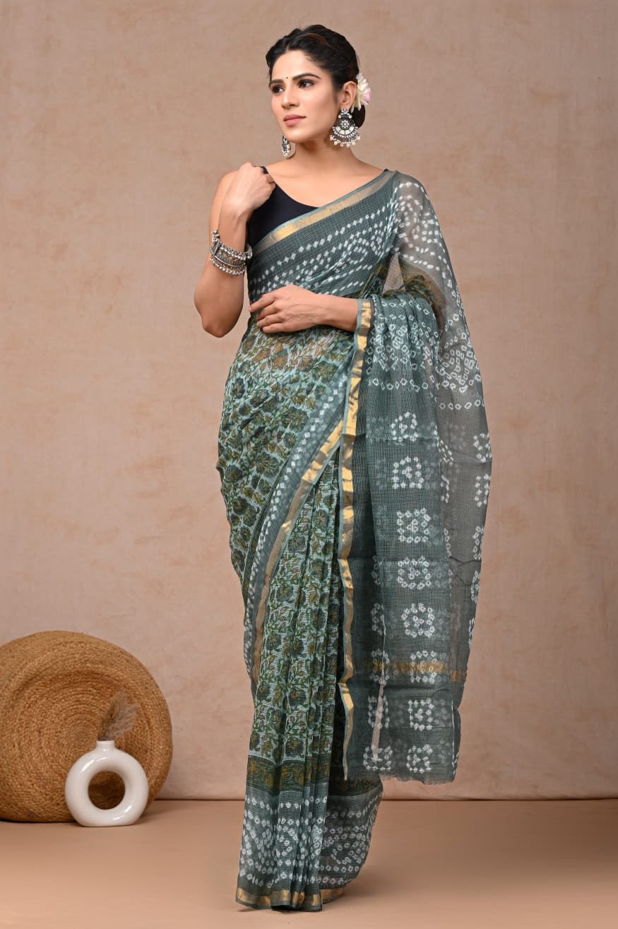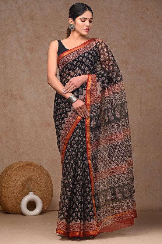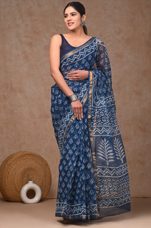 Hand Block Printed Kota Doriya Sarees With Blouse