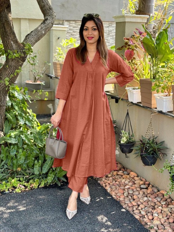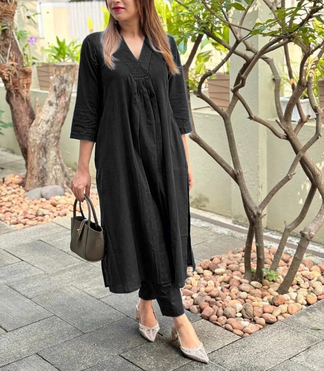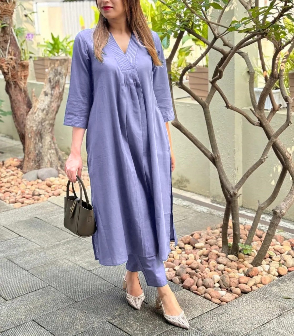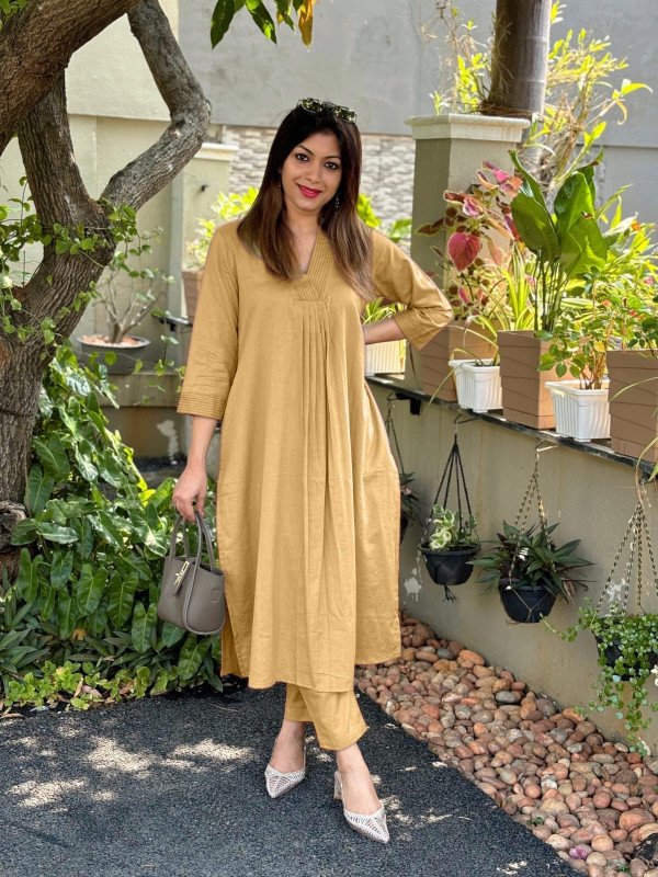 Introducing the all day comfort plain Co-ord sets in pure cotton. It comes with 1 side pockets and katha work on neck and sleeves.