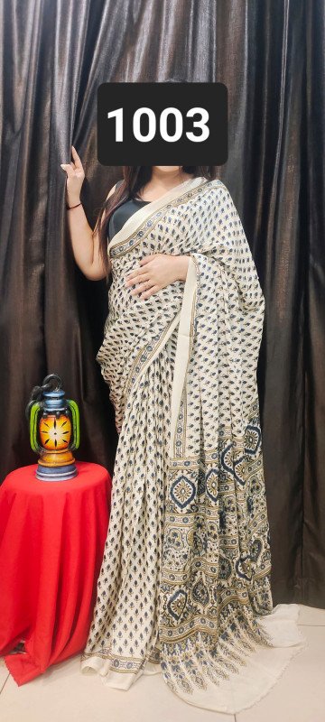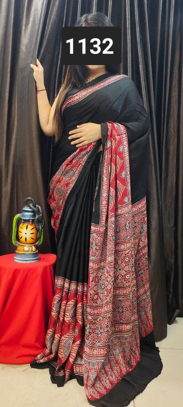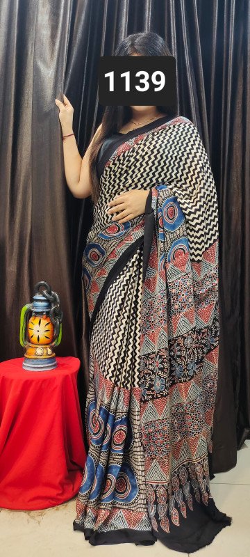 Modal Silk Ajrakh Saree With Blouse