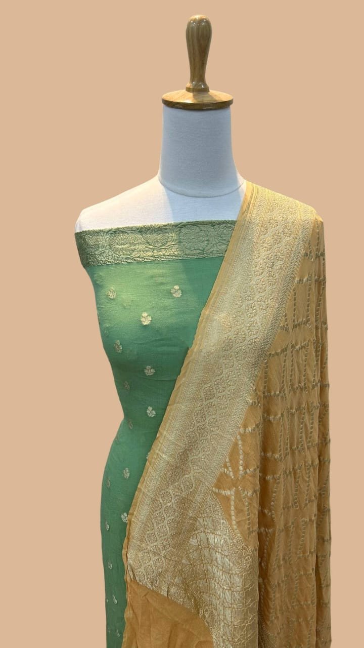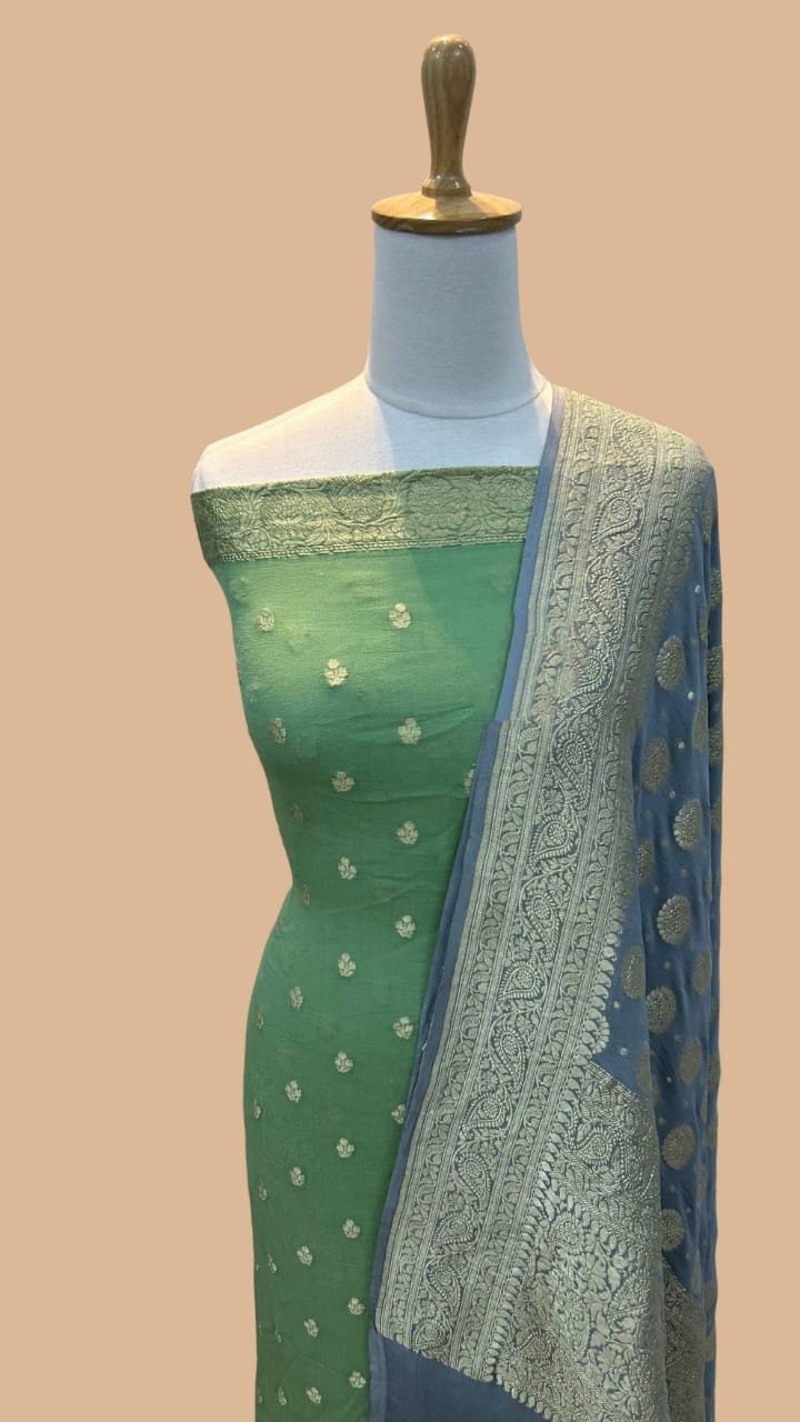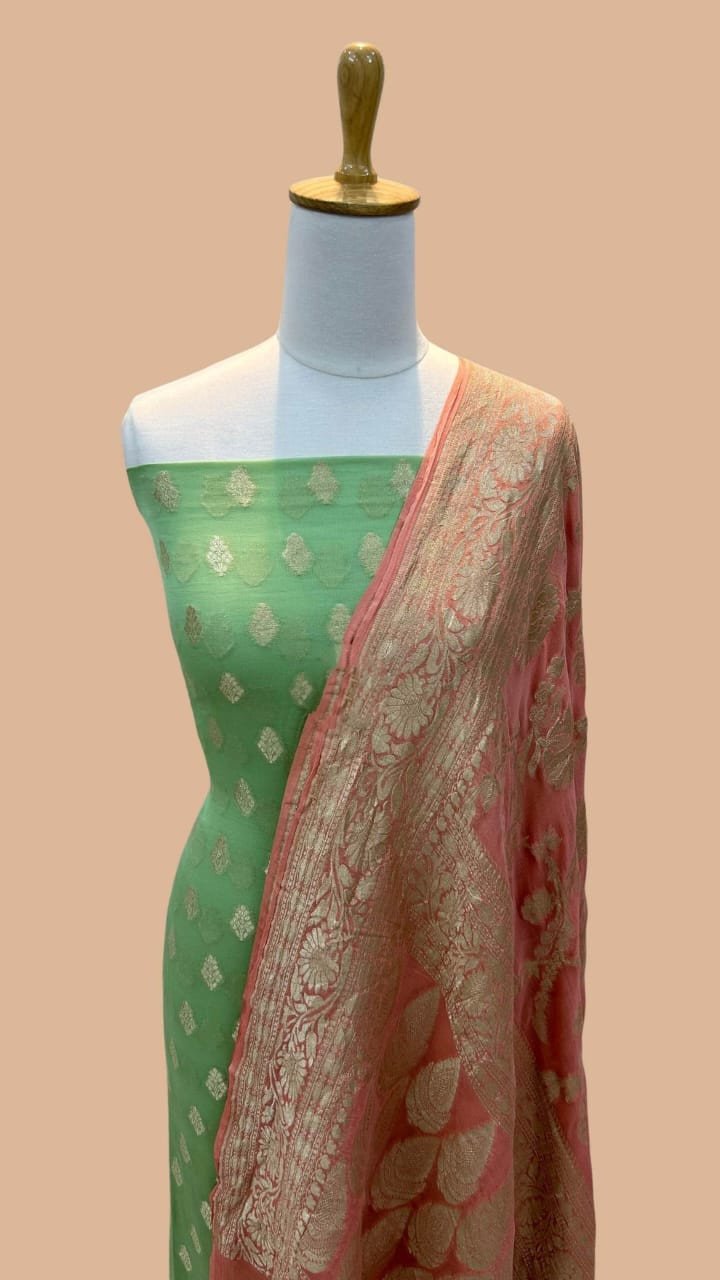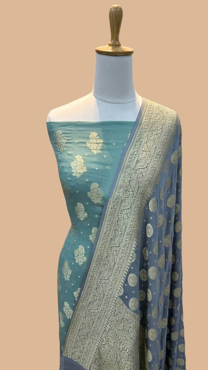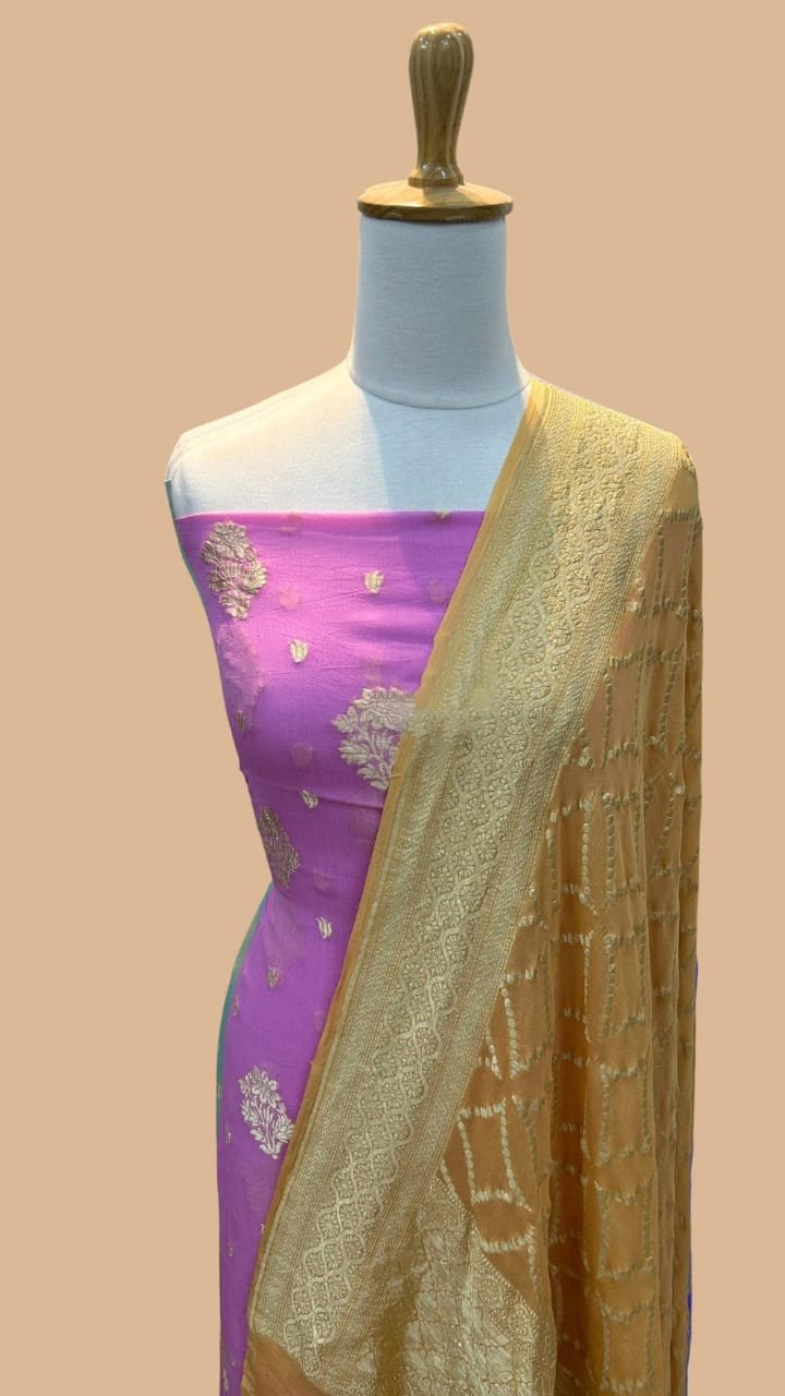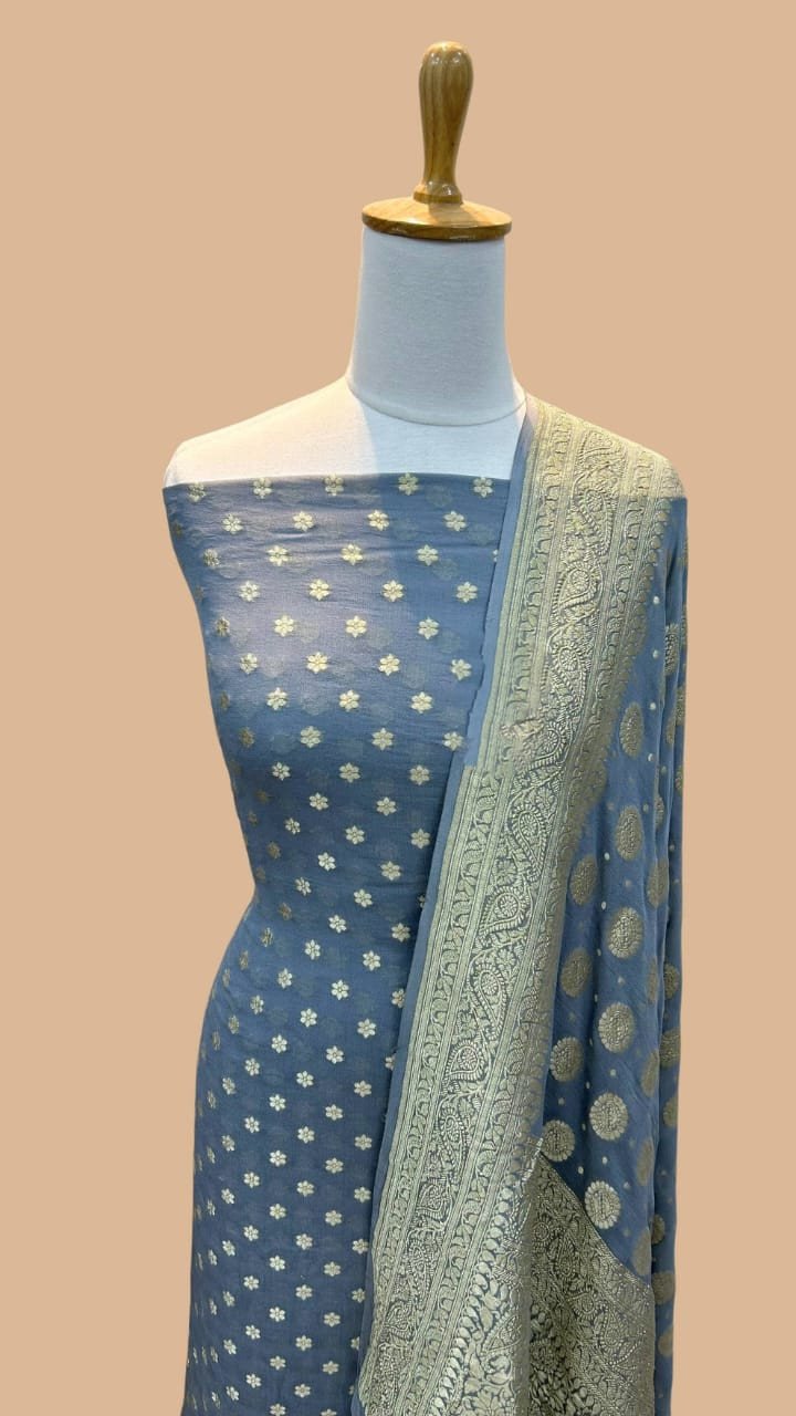 Pure Banarasi Khaddi Georgette Shuit Water Zari Work Handloom Made With Silk Trade Mark