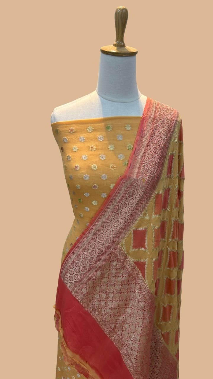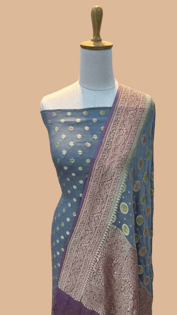 Pure Banarasi Khaddi GEORGETTE SHUIT Water  Zari work Handloom made with Silk trade mark,