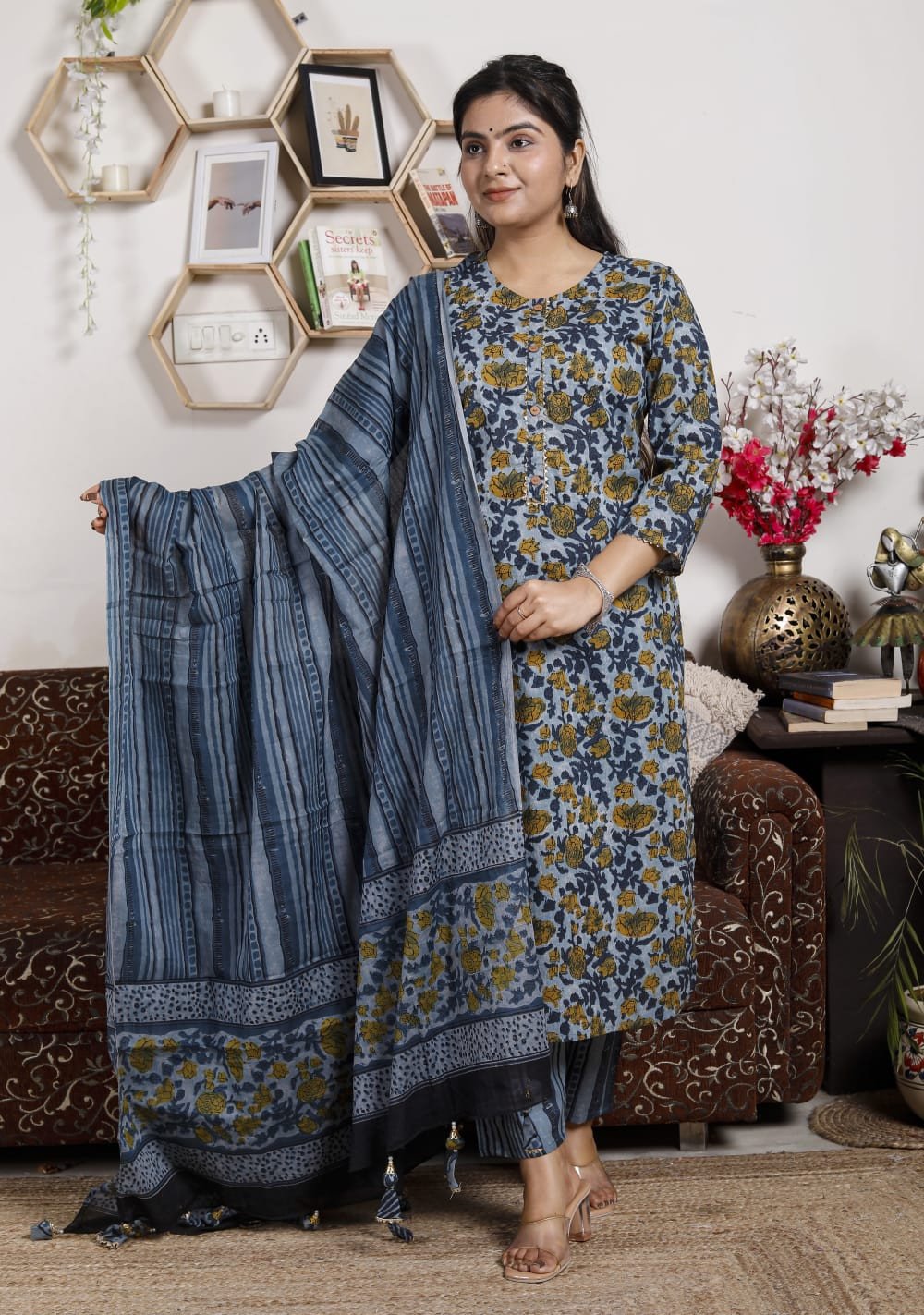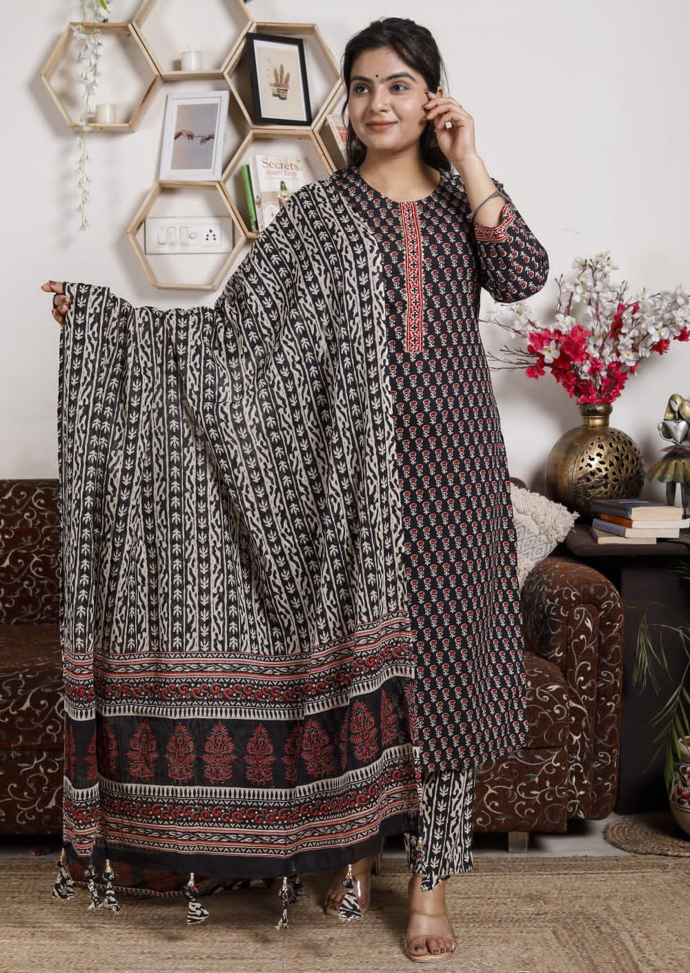➡Hand block printed Dupatta