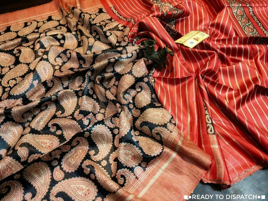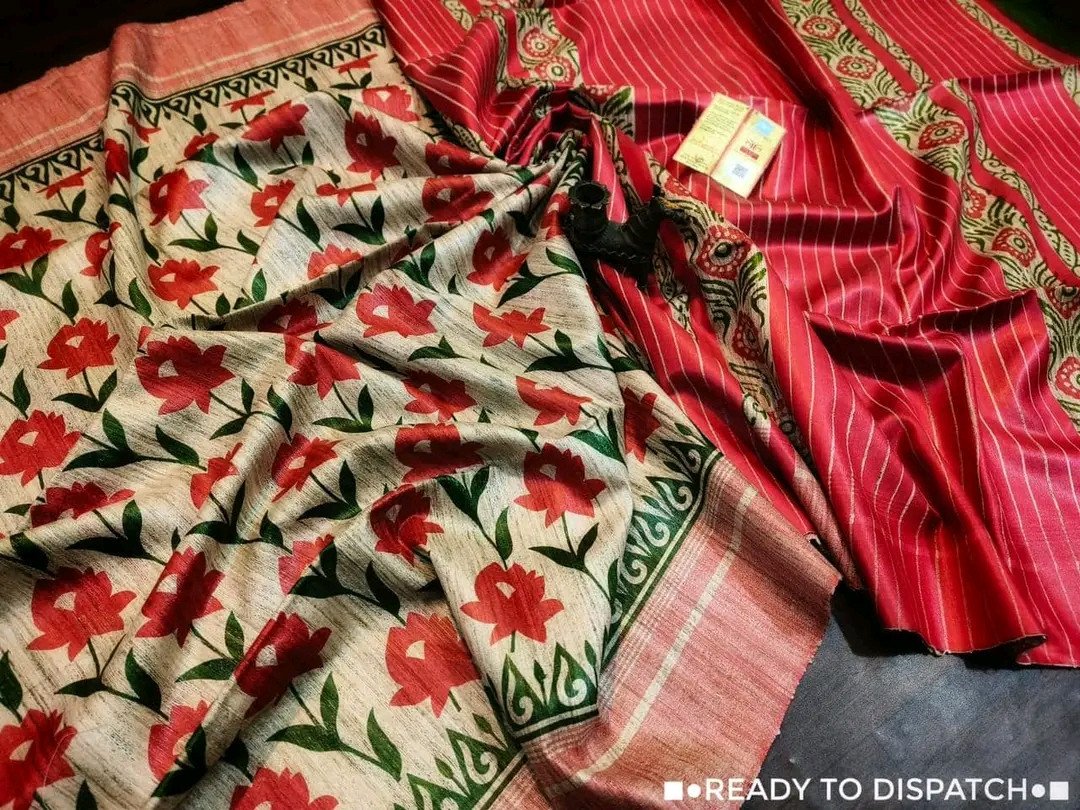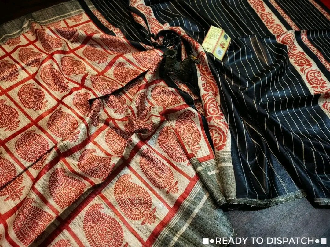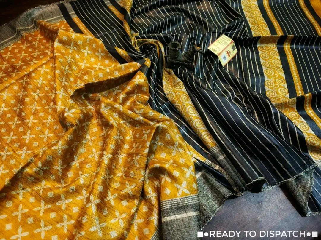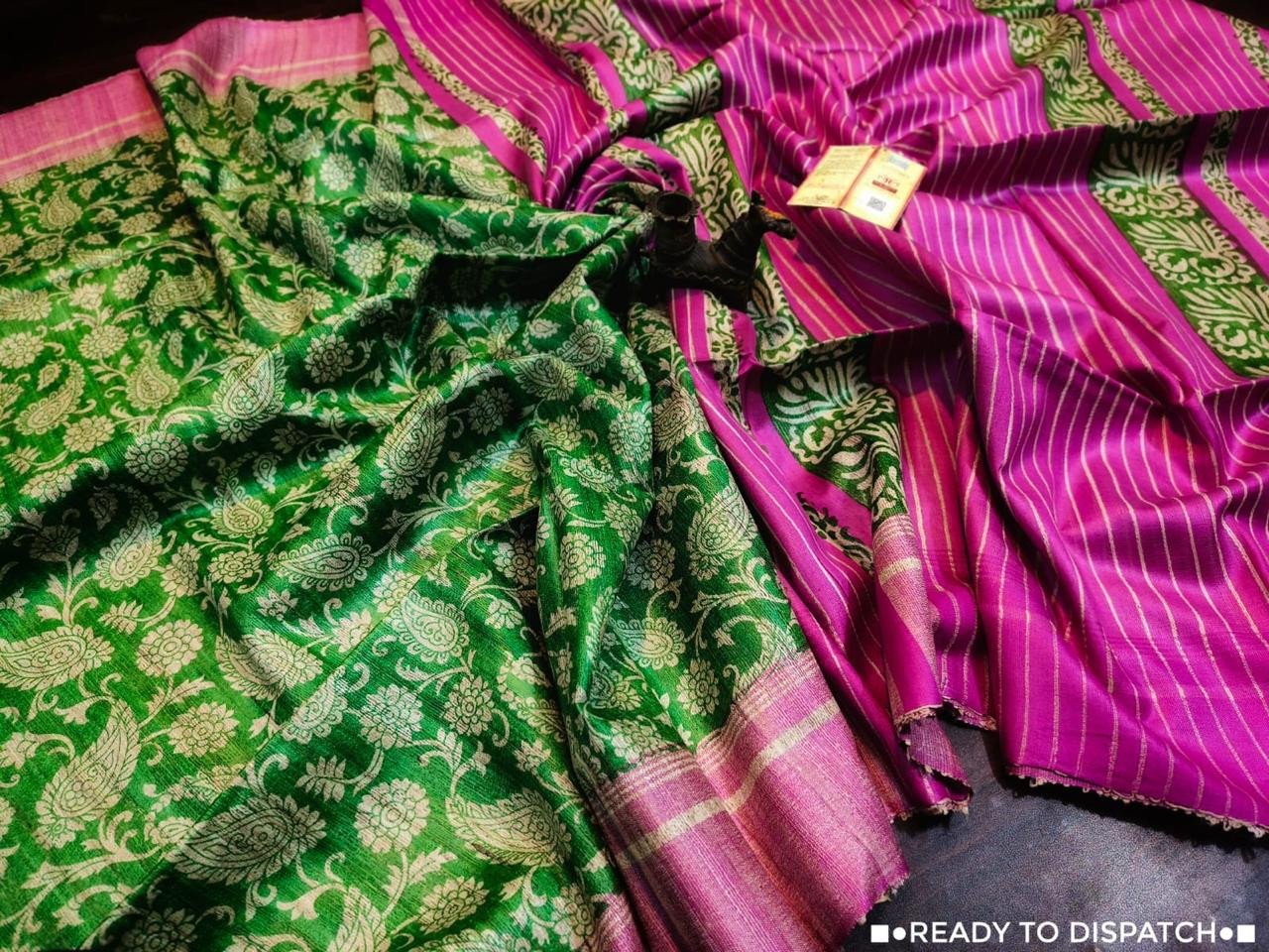 Tussar Ghicha Border Print Saree With Contrast Bp And Pallu