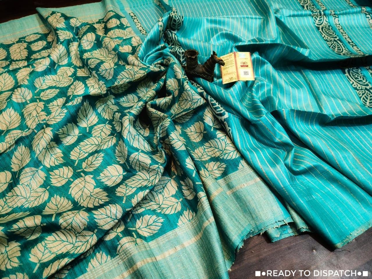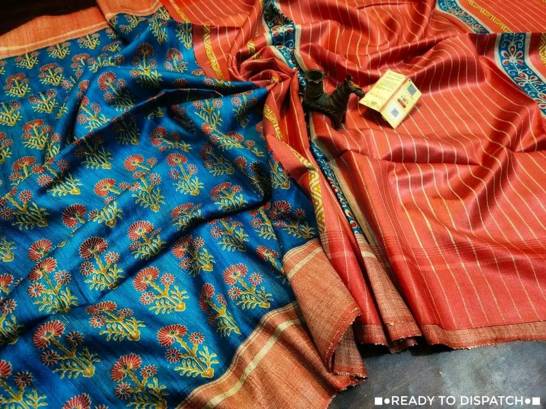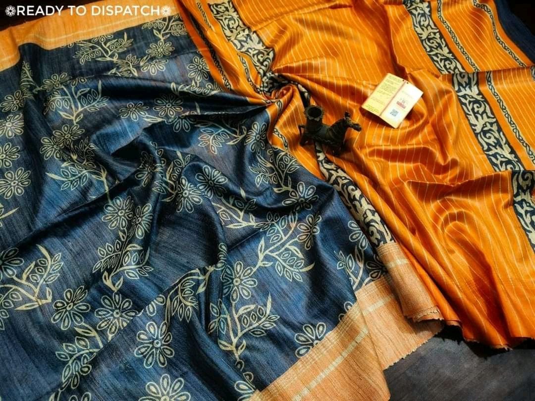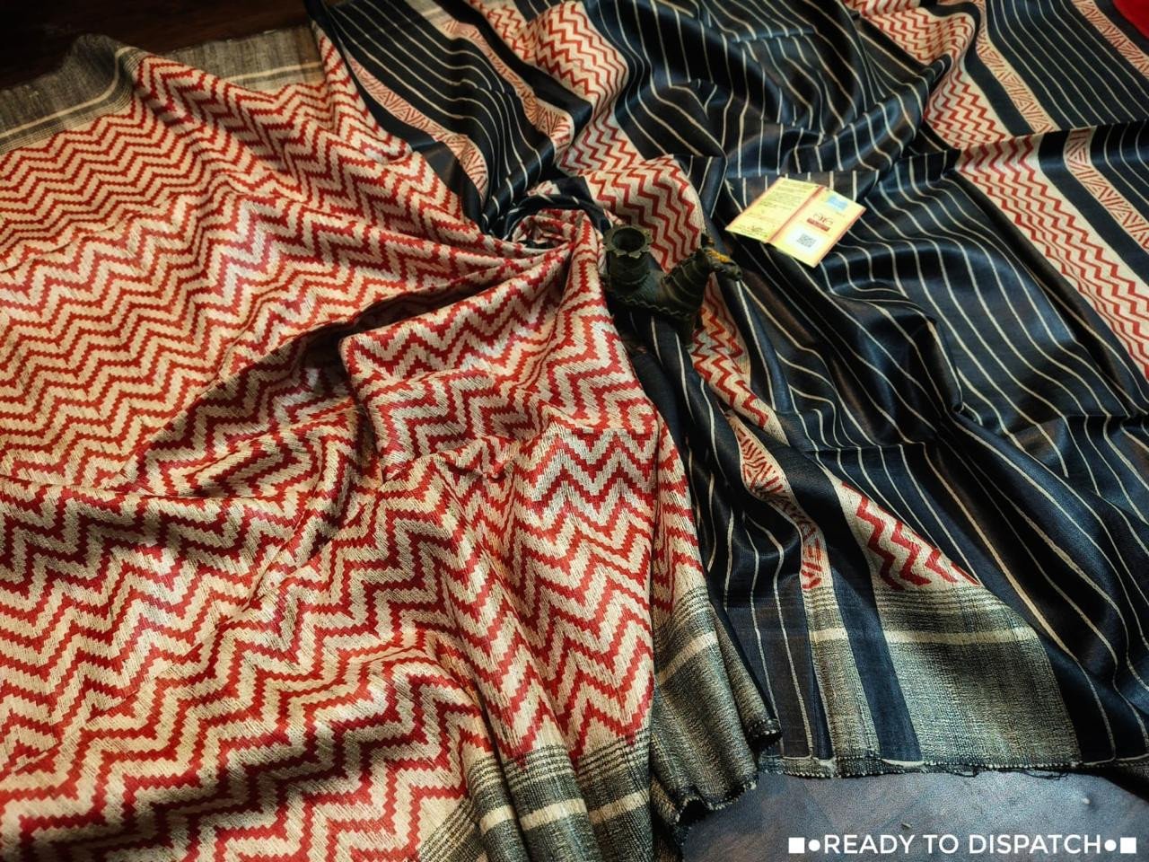 Tussar Ghicha Border Print Saree With Contrast Bp And Pallu