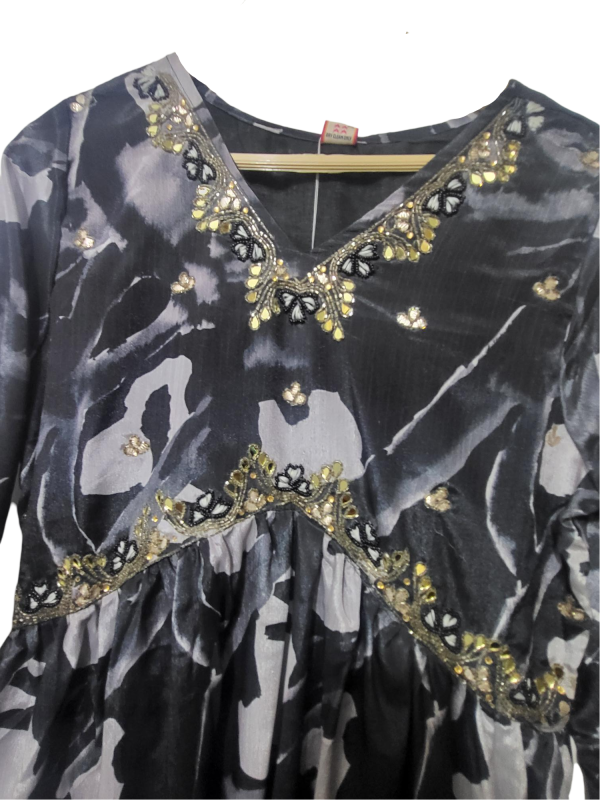 Embellishment: Features exquisite Light Zardosi Work, adding a touch of traditional metallic artistry and sparkle to the kurti.