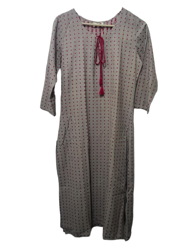 Women's Light Grey Colour Kurti and pant set, Pure Cotton