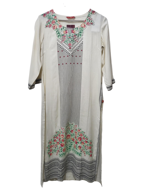 Color: A clean, elegant Off-white shade that serves as a pristine canvas, easily paired with any dupatta, jewelry, or footwear.