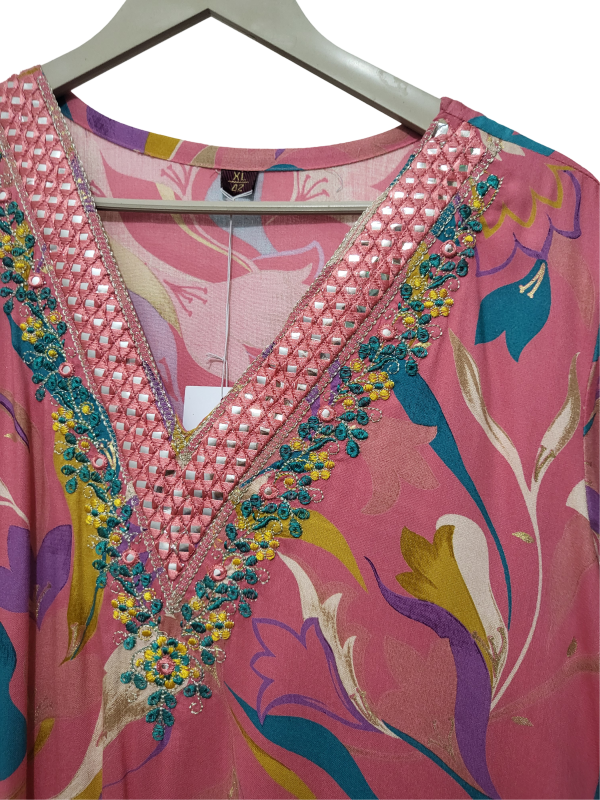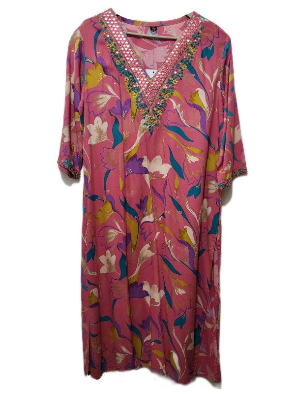 Fabric: A comfortable and smooth Rayon Cotton blend, offering a lovely drape, minimal wrinkling, and a soft feel against the skin.